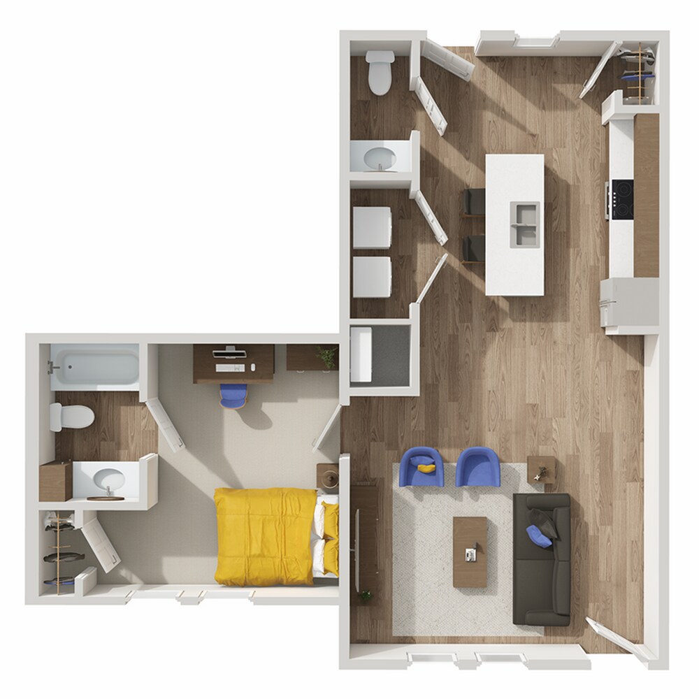 Apartment Model: E15 Bedroom, 5.5 Bath, 1872 sq ftAvailable August 21, 2026E1 - Floorplan 1 Apartment Unit: PrivateApartment Model: E15 Bedroom, 5.5 Bath, 1872 sq ftAvailable August 21, 2026