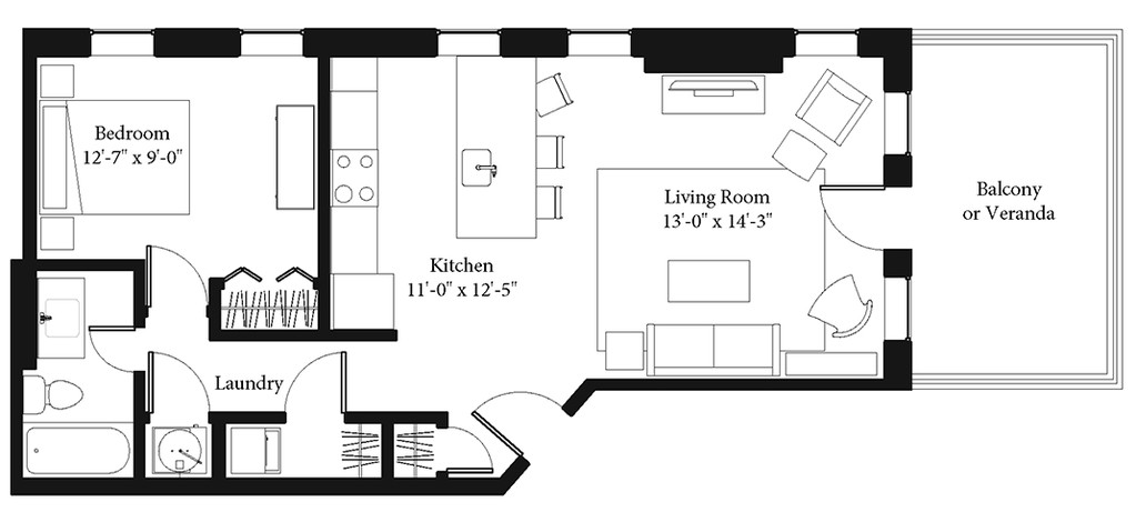 1 Bed, 1 Bath, 714 sq ftModel Gallery