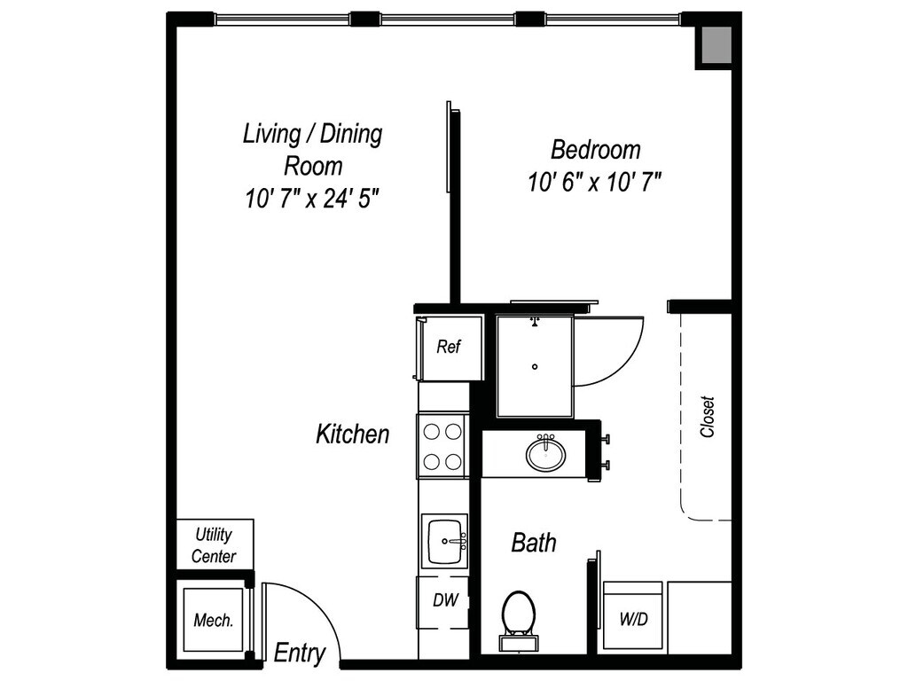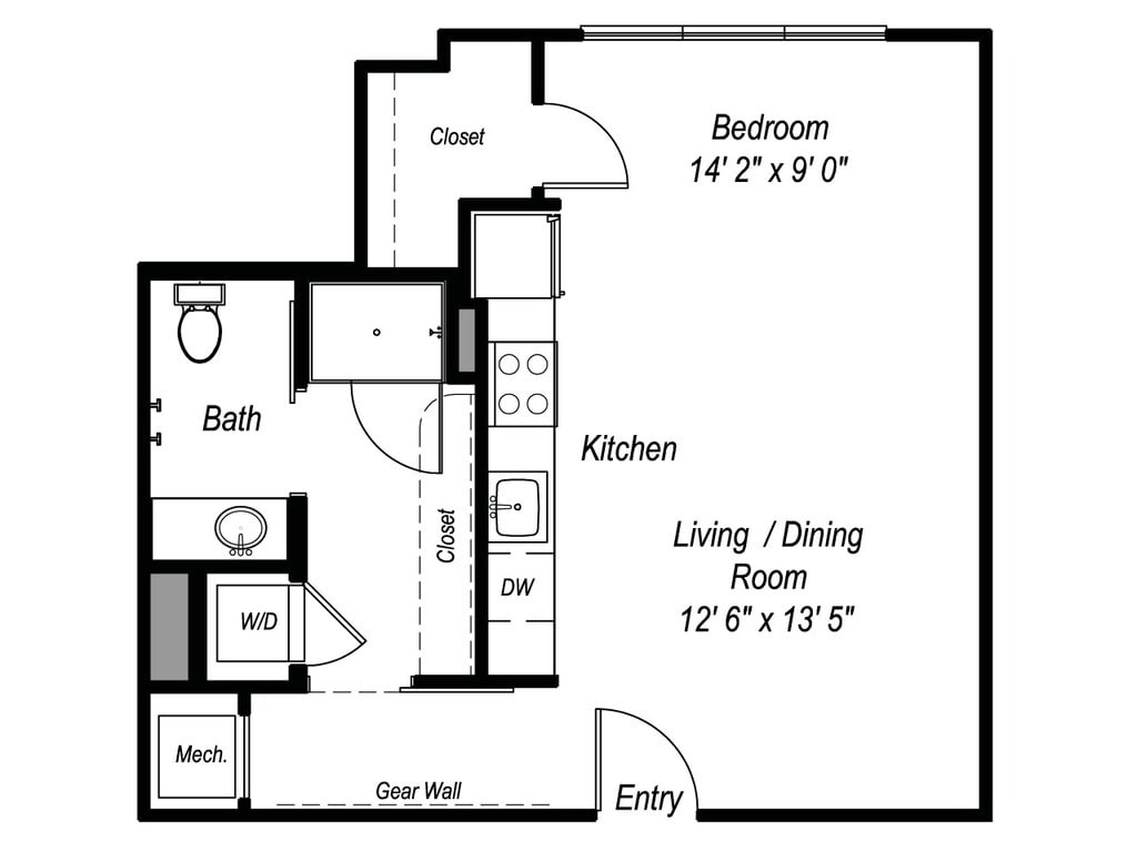 Studio-S3-2 - Floorplan 1 Apartment Unit: 409Apartment Model: Studio-S3-2$2,095Studio, 1 Bath, 540 sq ftAvailable Now1 Bedroom