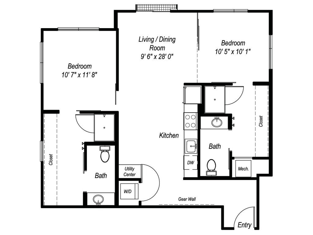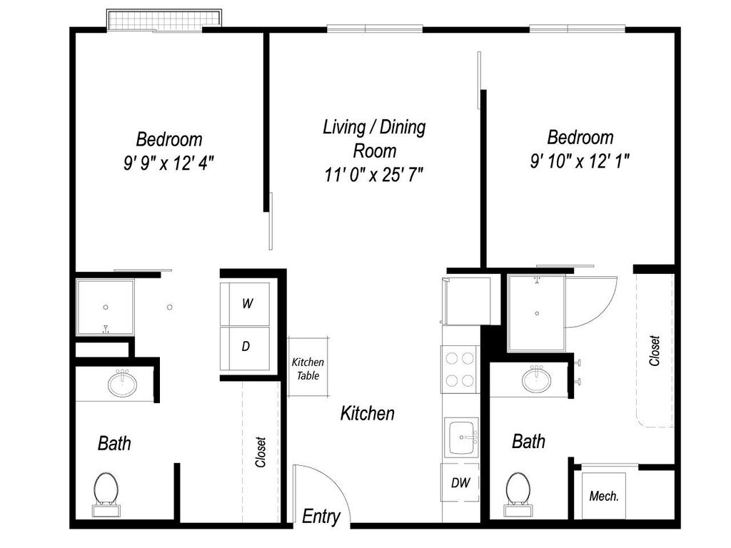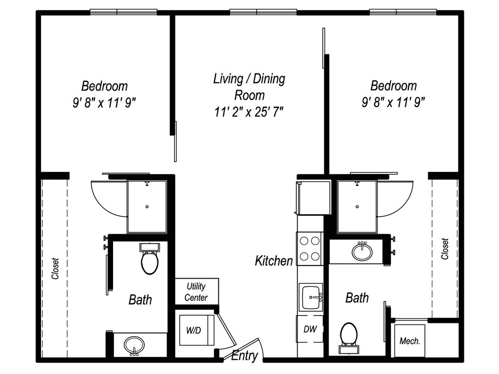 2 Beds, 2 Baths, 942 sq ftAvailable NowLargest 2 BedroomThis is the largest 2 Bedroom at this PropertyModel Gallery