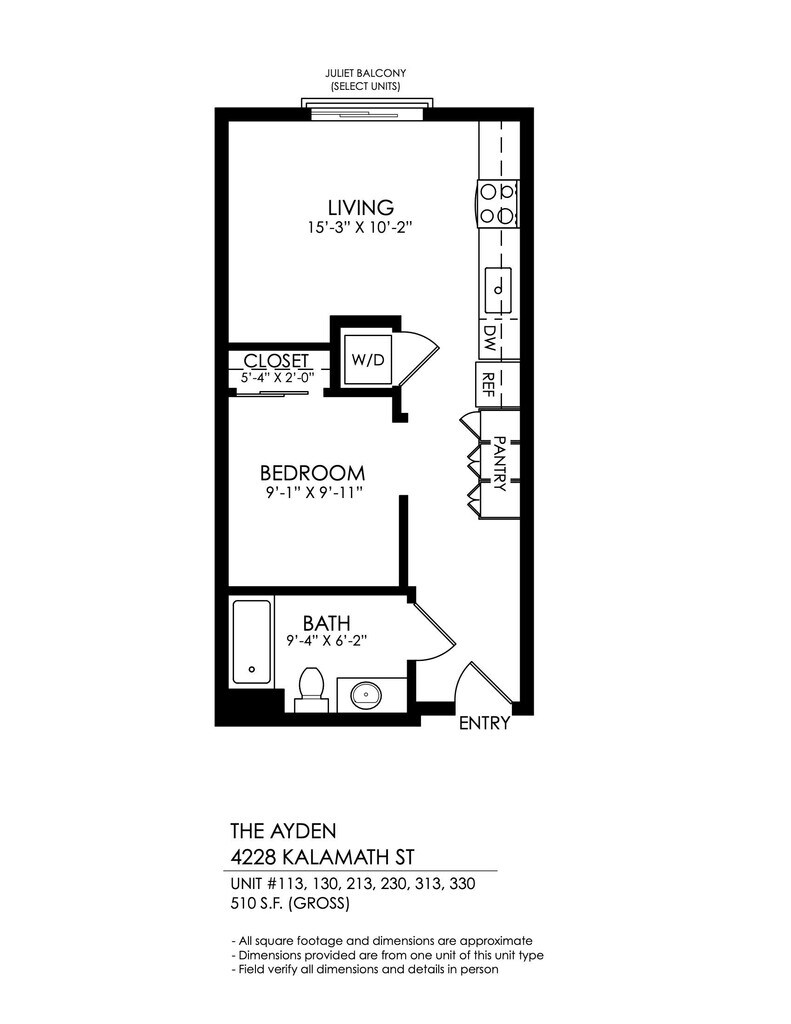 1 Bed, 1 Bath, 510 sq ftModel Gallery