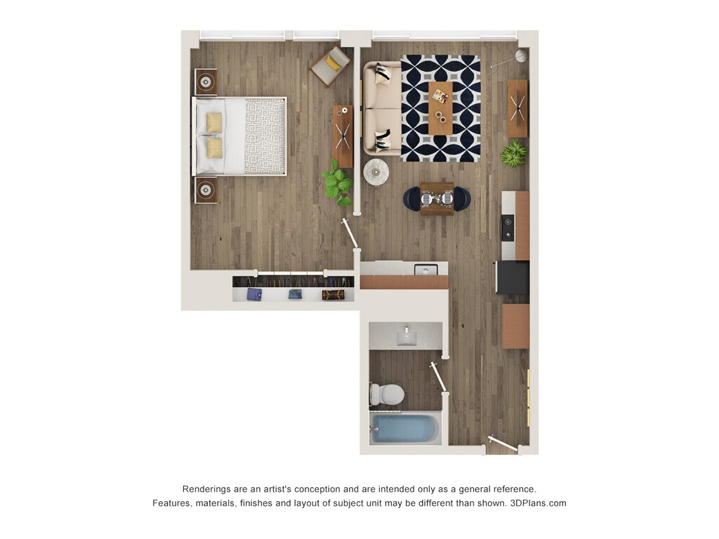 Studio, 1 Bath, 500 sq ftModel Gallery