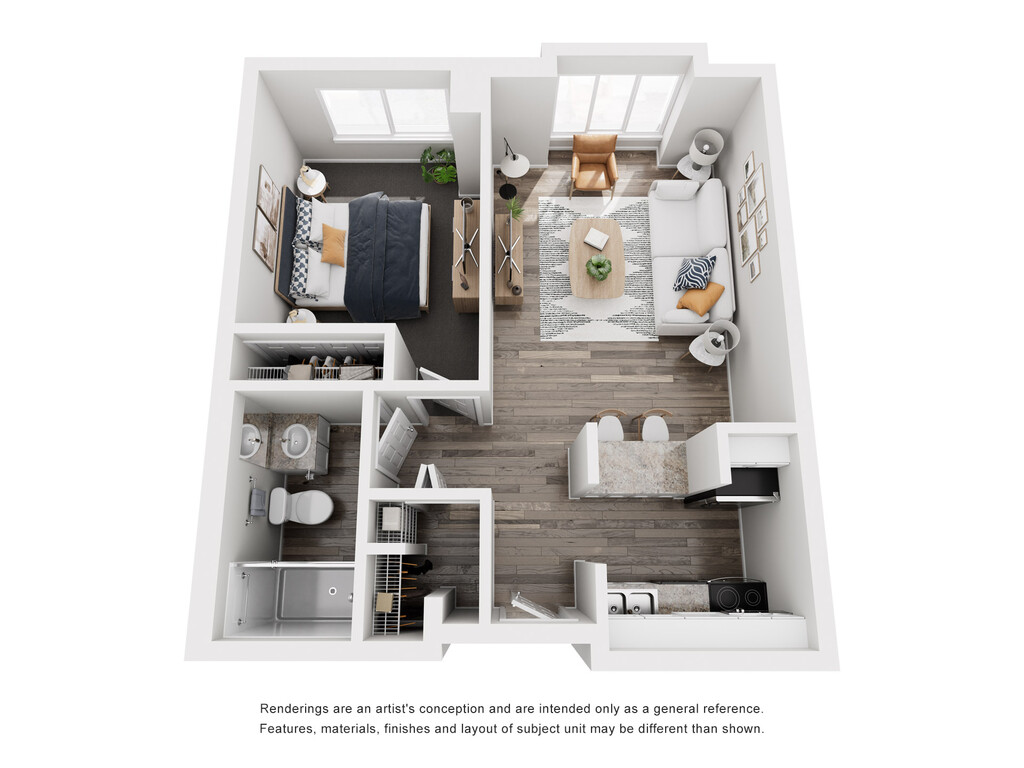 1 Bed, 1 Bath, 615 sq ftModel Gallery