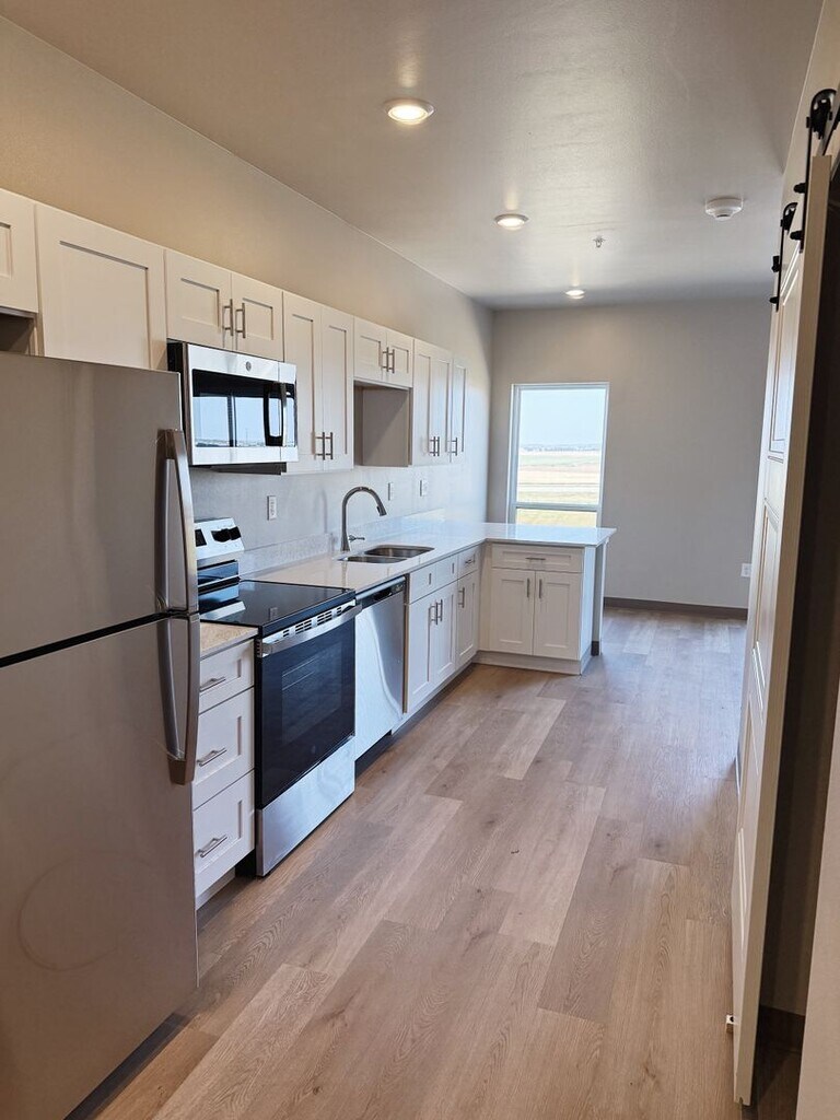 Welcome to The Baltic - Studio Style D, a stunning new construction located in the vibrant city of Tiffin, IA. This apartment is strategically situated at the intersection of I-380 & I-80 and offers easy access to various cities. The apartment features quartz countertops, top-of-the-line stainless steel GE appliances, and LVP flooring throughout, adding a touch of elegance and durability. Additionally, the apartment includes a barn door, adding privacy to the dedicated bedroom area. Step outside onto your private balcony for a breath of fresh air or enjoy the comfort of your home with the efficient mini-split air system. Experience the perfect blend of style, comfort, and convenience at The Baltic - Studio Style D.