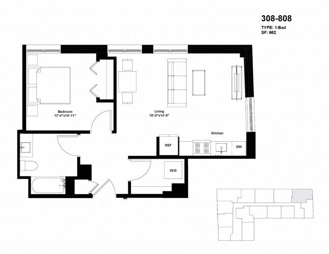 Units 308 to 808 - Floorplan 1 Apartment Unit: 808Apartment Model: Units 308 to 808$1,7921 Bedroom, 1 Bath, 662 sq ftAvailable January 21, 2026