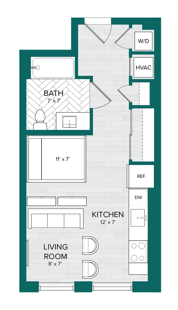 Studio-A5 - Floorplan 1 Apartment Unit: 610Apartment Model: Studio-A5$1,665Studio, 1 Bath, 417 sq ftAvailable NowStudio-A5.1