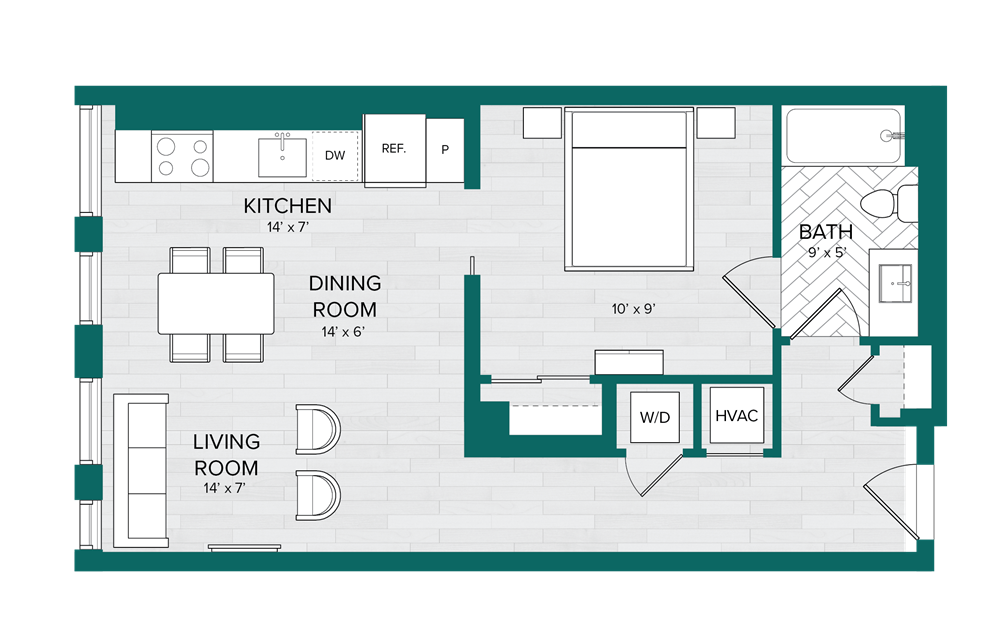 Studio-A2.1 - Floorplan 1 1 Bedroom