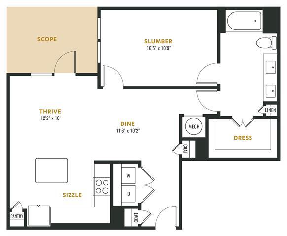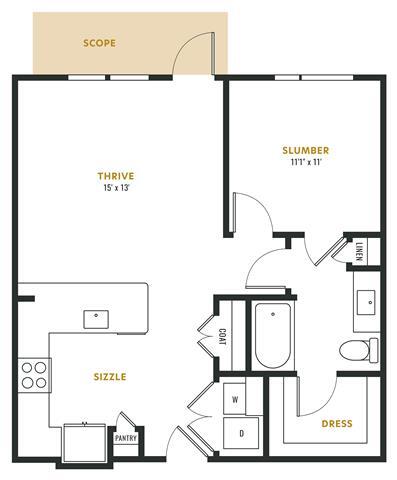 Studio, 1 Bath, 616 sq ftAvailable Dec 14Largest StudioThis is the largest Studio at this PropertyModel Gallery