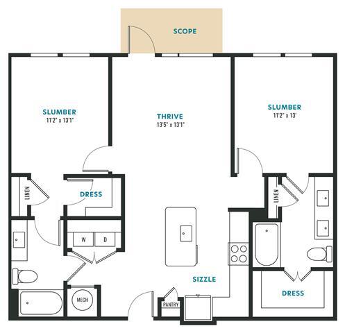 A2 - Floorplan 1 Apartment Unit: 2310Apartment Model: A2$1,5501 Bedroom, 1 Bath, 701 sq ftAvailable NowFloorplan A4