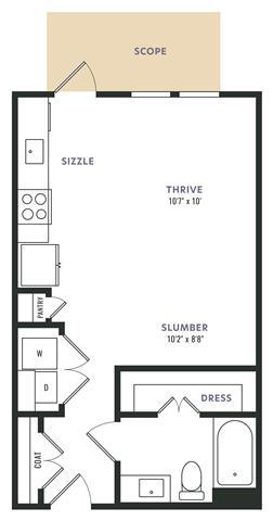 Apartment Model: S2From $1,137Studio, 1 Bath, 542 sq ftAvailable NowFloor plans are artist's rendering. All dimensions are approximate. Actual product and specifications may vary in dimension or detail. Not all features are available in every rental home. Prices and availability are subject to change. Base rent is based on monthly frequency. Additional fees may apply, such as but not limited to package delivery, trash, water, amenities, etc. Deposits vary. Please see a representative for details.