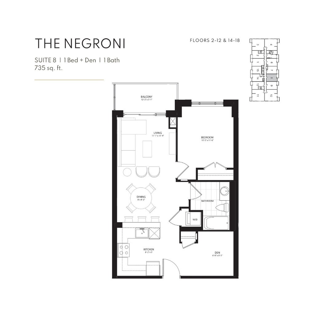 The Vesper - Floorplan 1 Apartment Unit: 406Apartment Model: The Vesper$2,2501 Bedroom, 1 Bath, 733 sq ftAvailable NowApartment Unit: 906Apartment Model: The Vesper$2,2991 Bedroom, 1 Bath, 733 sq ftAvailable NowThe Negroni