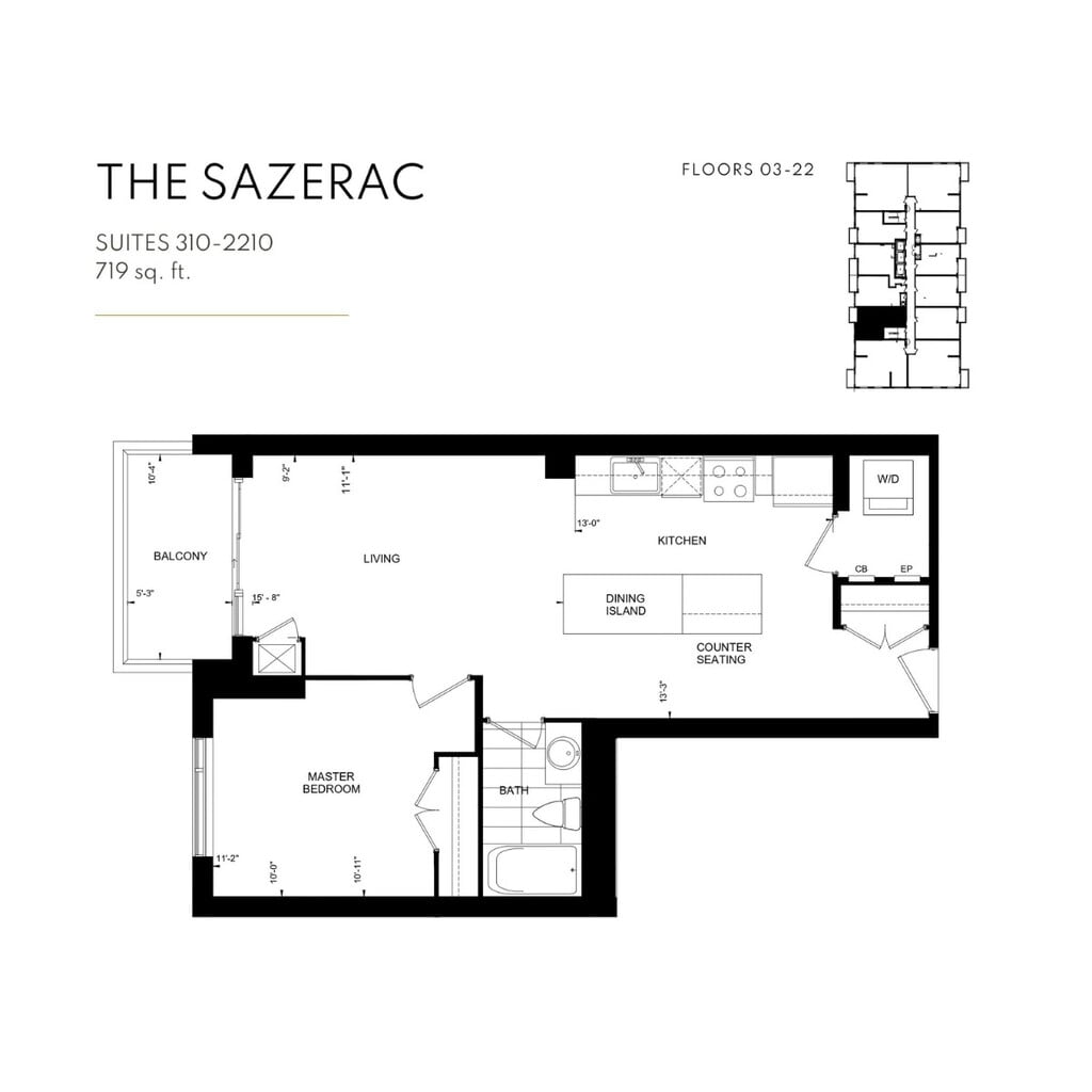 The Sazerac - Floorplan 1 Apartment Unit: 1110Apartment Model: The Sazerac$2,0991 Bedroom, 1 Bath, 719 sq ftAvailable NowThe Hummingbird