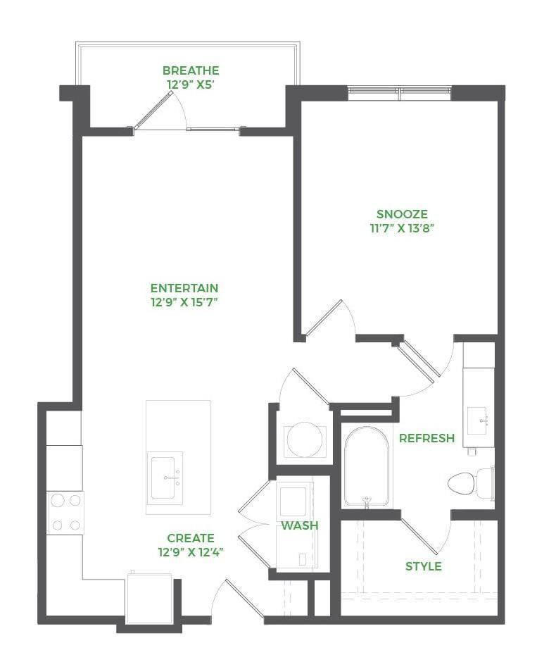 Apartment Model: A7From $1,5961 Bedroom, 1 Bath, 777 sq ftAvailable Now![]()