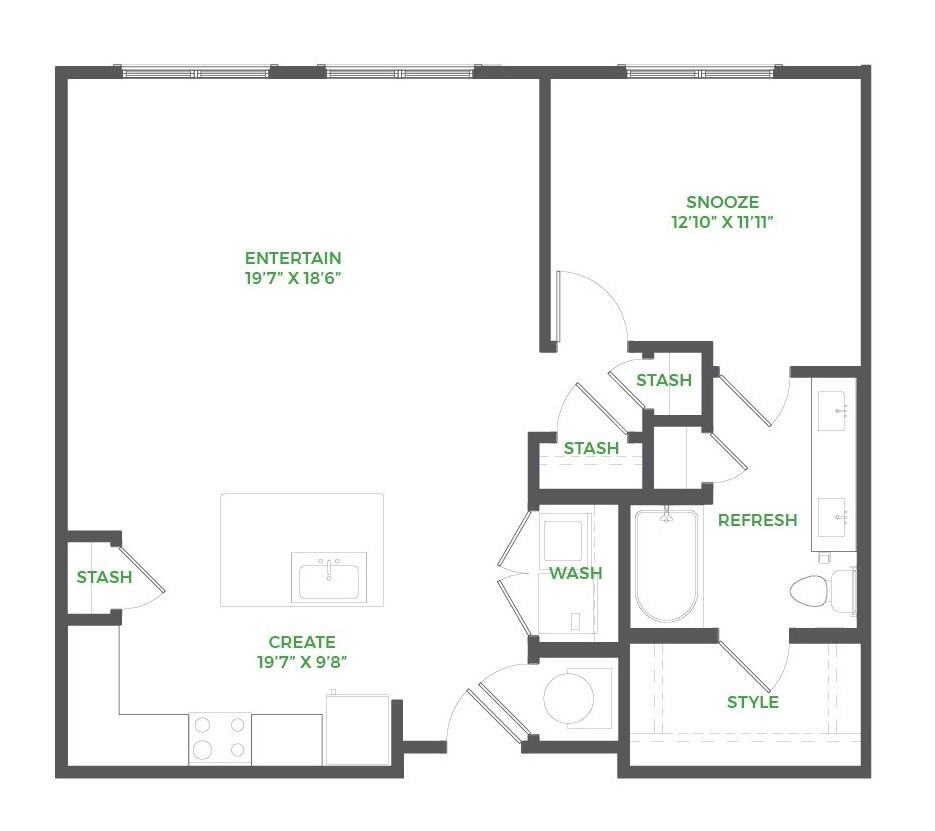 1 Bed, 1 Bath, 777 sq ftAvailable NowModel Gallery
