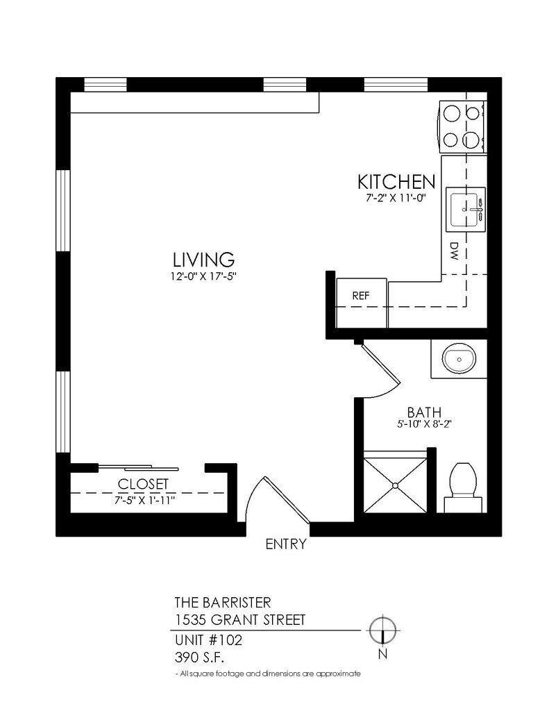 The Barrister offers Studio apartments starting from $850 and having 355–490 sq ft. Here is the current pricing and availability: