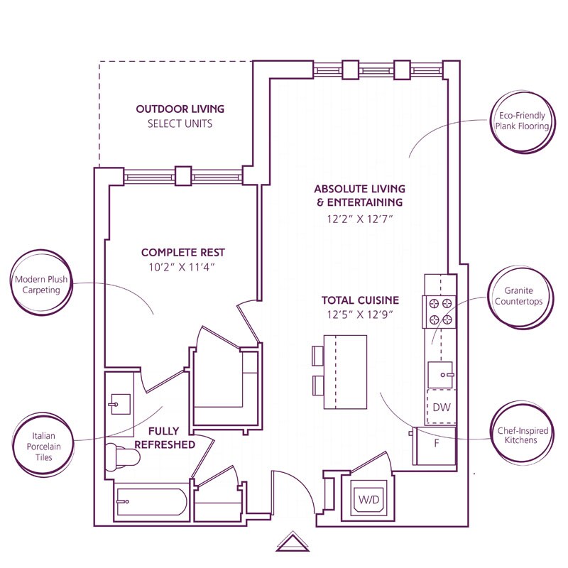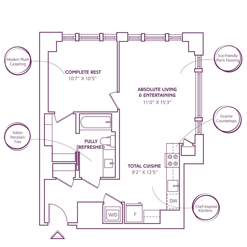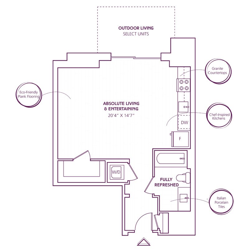 Studio, 1 Bath, 608 sq ftAvailable NowModel Gallery
