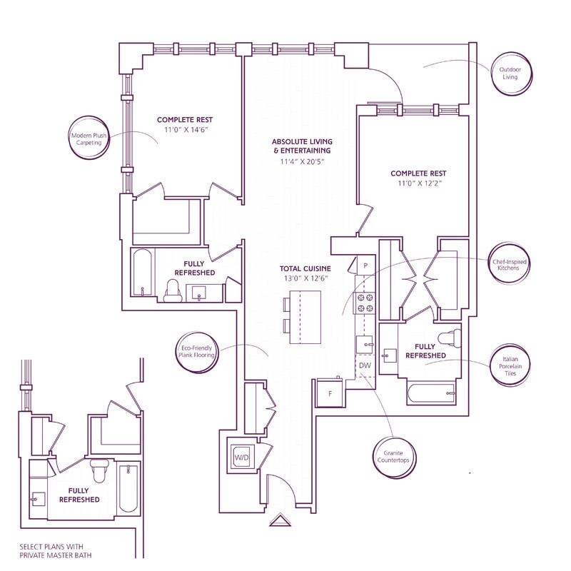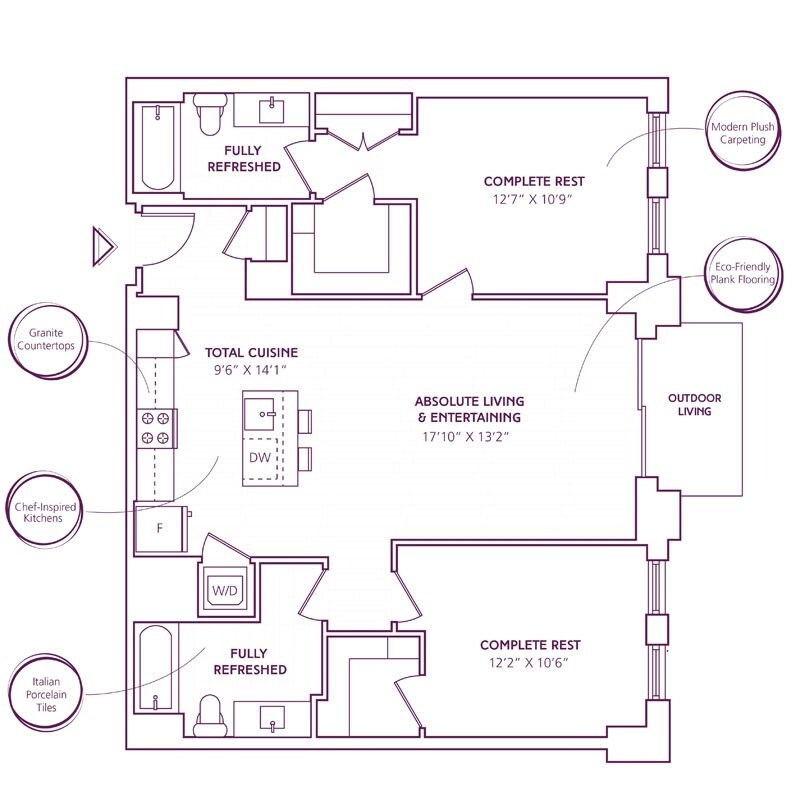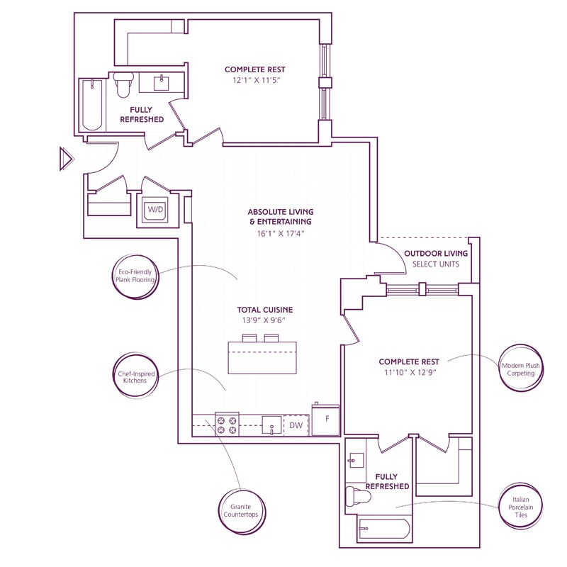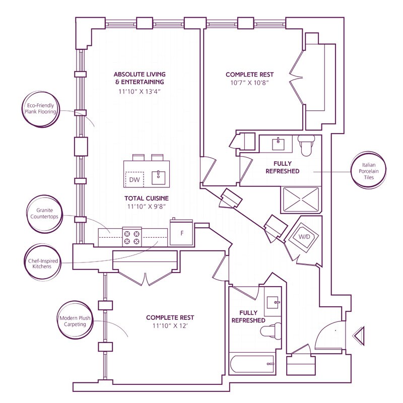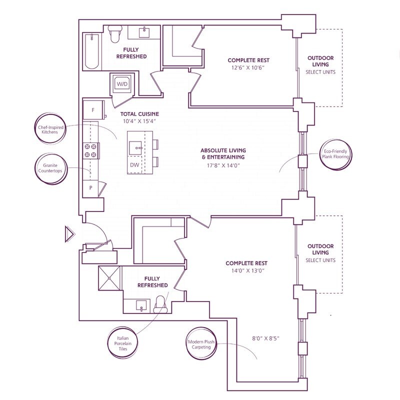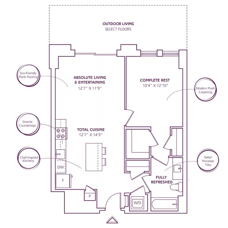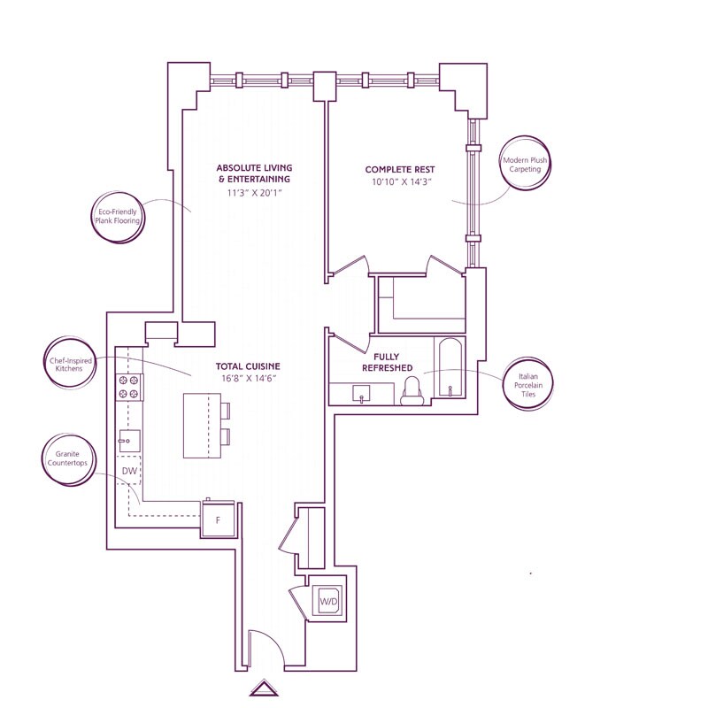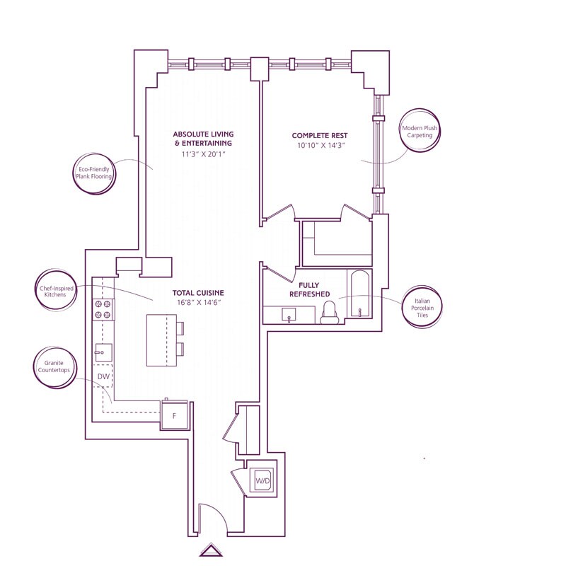 1 Bed, 1 Bath, 604 sq ftAvailable NowModel Gallery