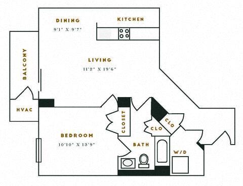 Apartment Model: D1RFrom $2,4321 Bedroom, 1 Bath, 760-772 sq ftAvailable NowFloor plans are artist's rendering. All dimensions are approximate. Actual product and specifications may vary in dimension or detail. Not all features are available in every rental home. Prices and availability are subject to change. Base rent is based on monthly frequency. Additional fees may apply, such as but not limited to package delivery, trash, water, amenities, etc. Deposits vary. Please see a representative for details.