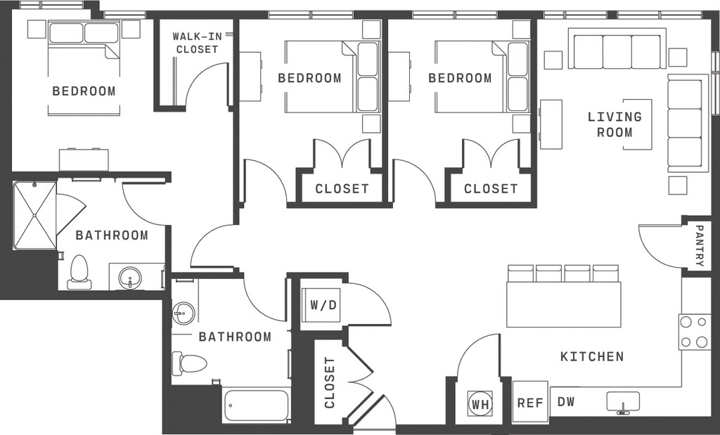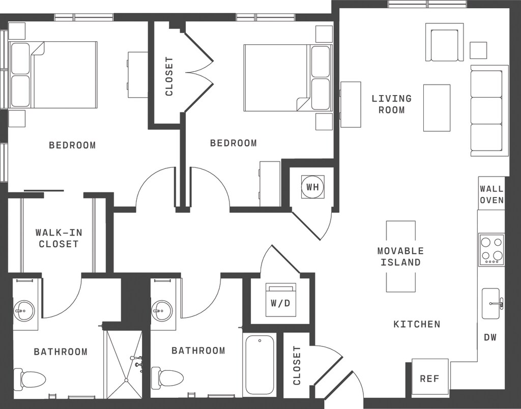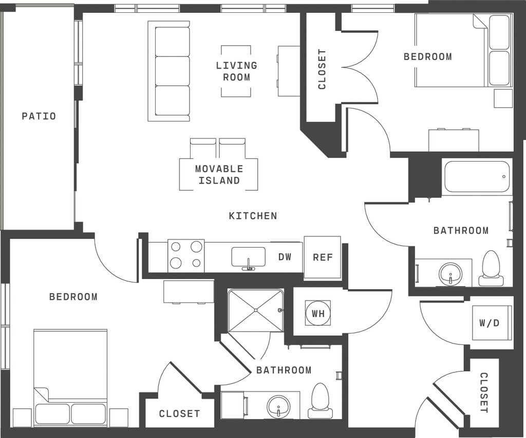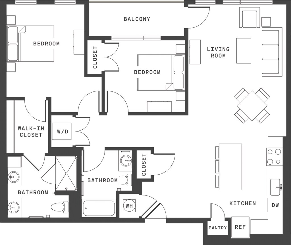 - 1 BedroomSee More- A1-G2- From $2,6151 Bed, 1 Bath, 741-743 sq ftPlus FeesAvailable Now- Model Gallery- Floorplans- Availability Details- Price - Availability Date - Unit - Sq Ft - View Details - $2,835 - Available Now - 1-2302 - 743 - $2,615 - November 24, 2025 - 3-4220 - 741 - Model Amenities and Features- Features- Washer/Dryer