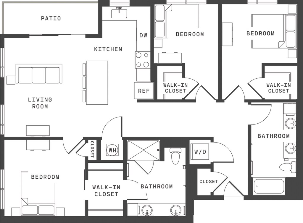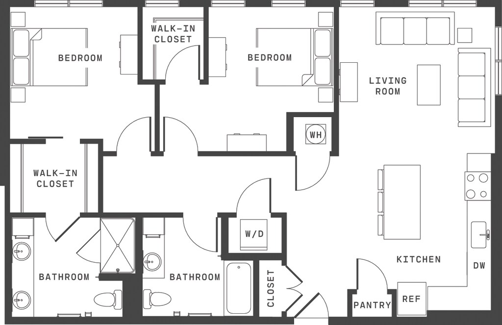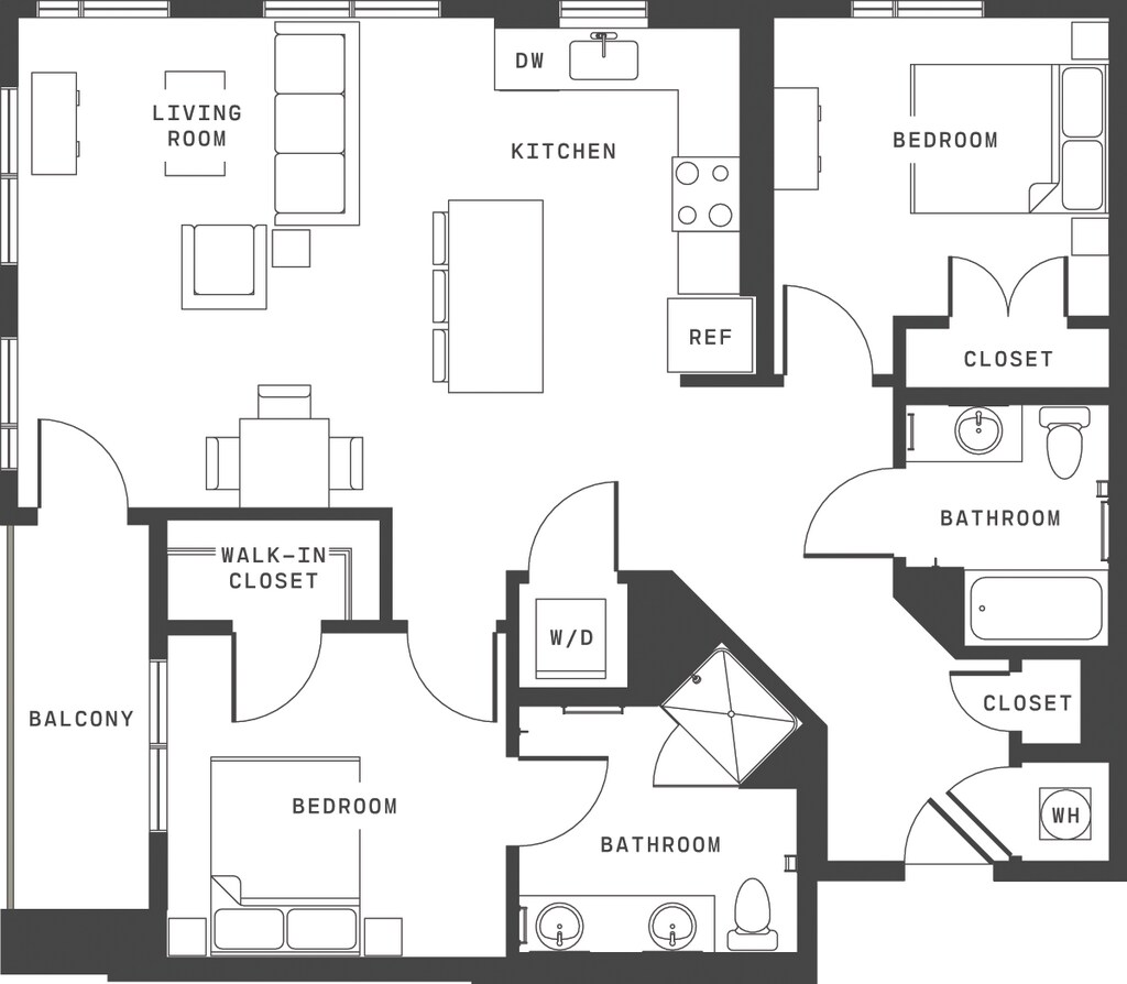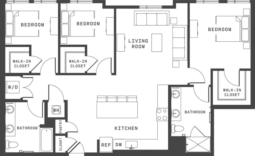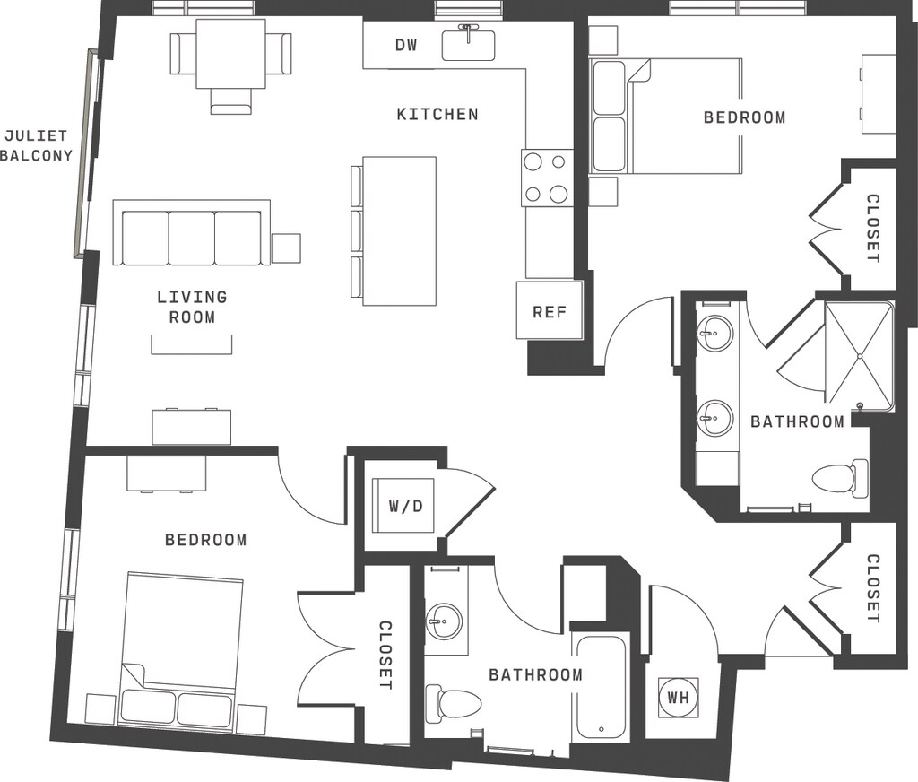 - 1 BedroomSee More- A1-G2- From $2,6151 Bed, 1 Bath, 741-743 sq ftPlus FeesAvailable Now- Model Gallery- Floorplans- Availability Details- Price - Availability Date - Unit - Sq Ft - View Details - $2,835 - Available Now - 1-2302 - 743 - $2,615 - November 24, 2025 - 3-4220 - 741 - Model Amenities and Features- Features- Washer/Dryer