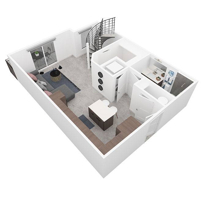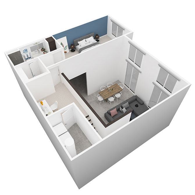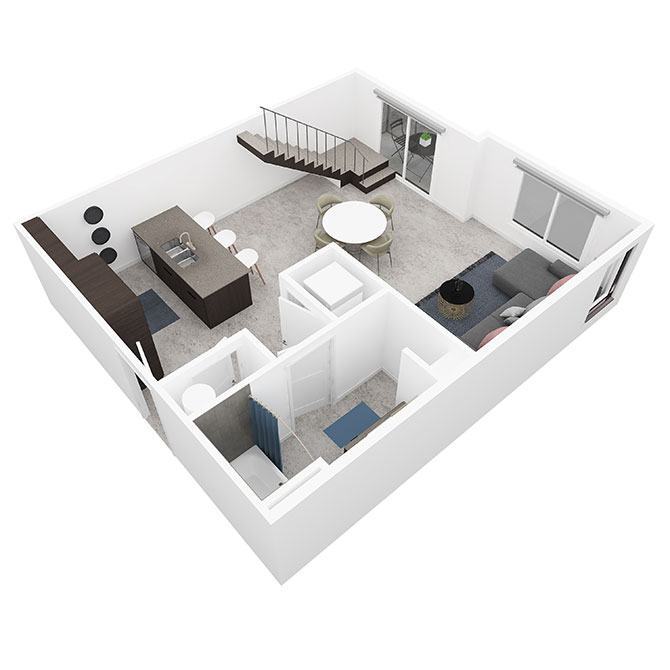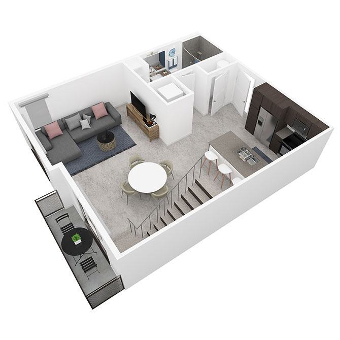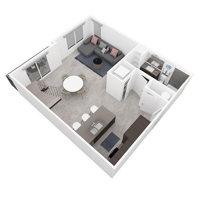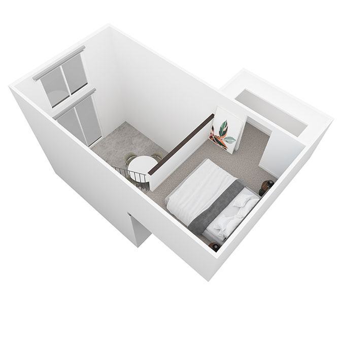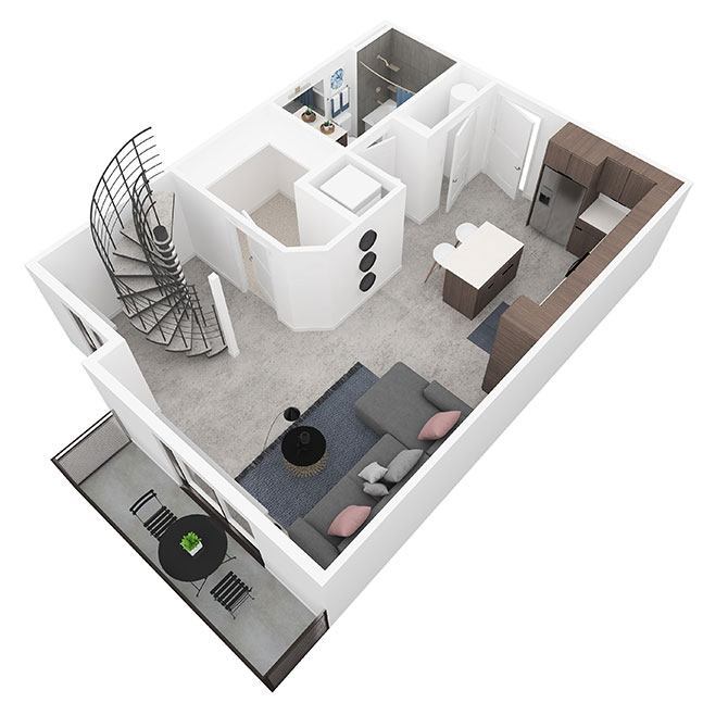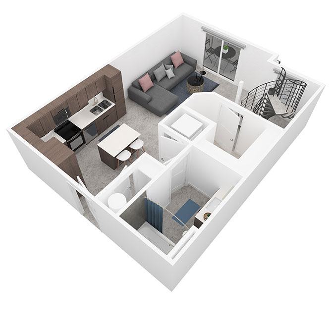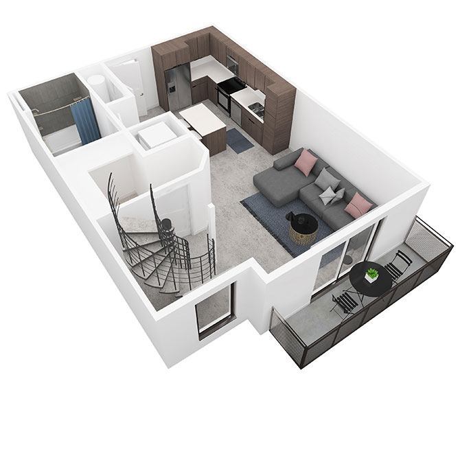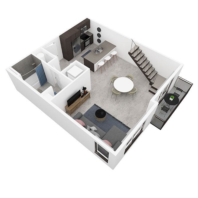 Studio Loft - Floorplan 3 Floor plans are artist's rendering. All dimensions are approximate. Actual product and specifications may vary in dimension or detail. Not all features are available in every rental home. Prices and availability are subject to change. Base rent is based on monthly frequency. Additional fees may apply, such as but not limited to package delivery, trash, water, amenities, etc. Deposits vary. Please see a representative for details.