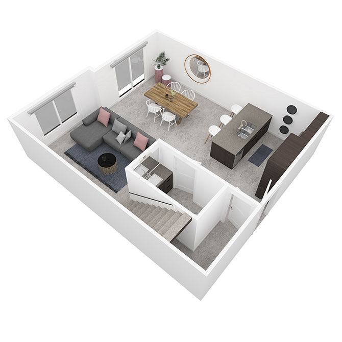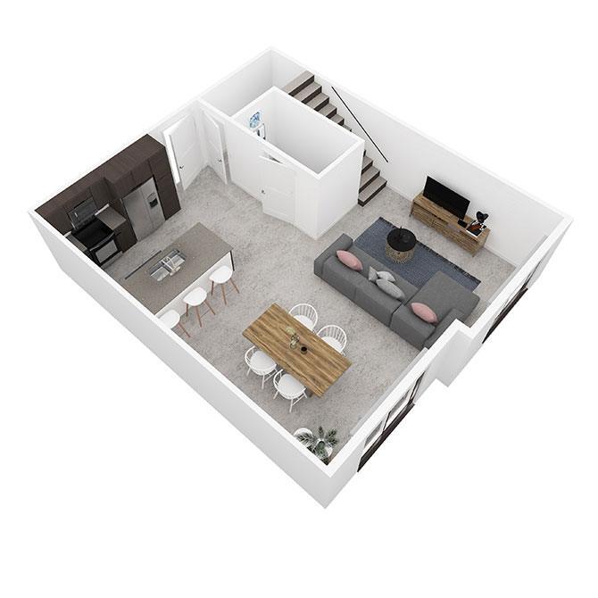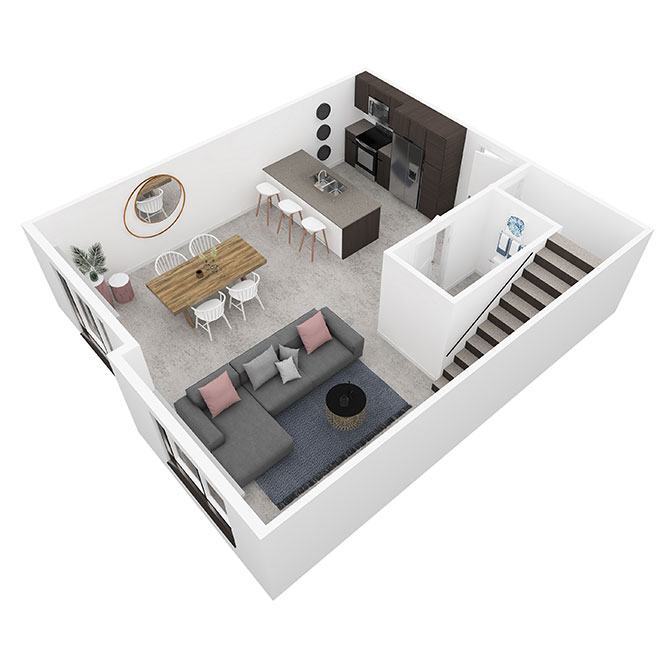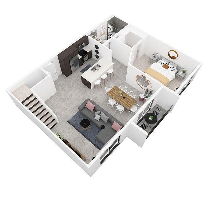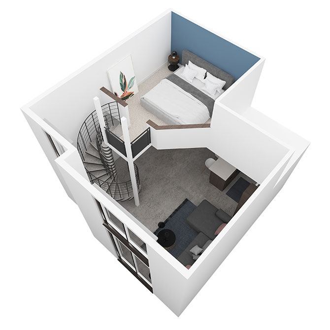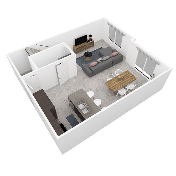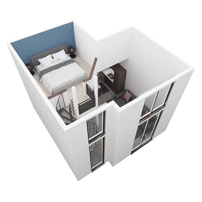 Studio Loft - Floorplan 2 Floor plans are artist's rendering. All dimensions are approximate. Actual product and specifications may vary in dimension or detail. Not all features are available in every rental home. Prices and availability are subject to change. Base rent is based on monthly frequency. Additional fees may apply, such as but not limited to package delivery, trash, water, amenities, etc. Deposits vary. Please see a representative for details.