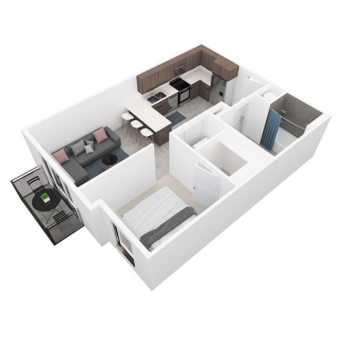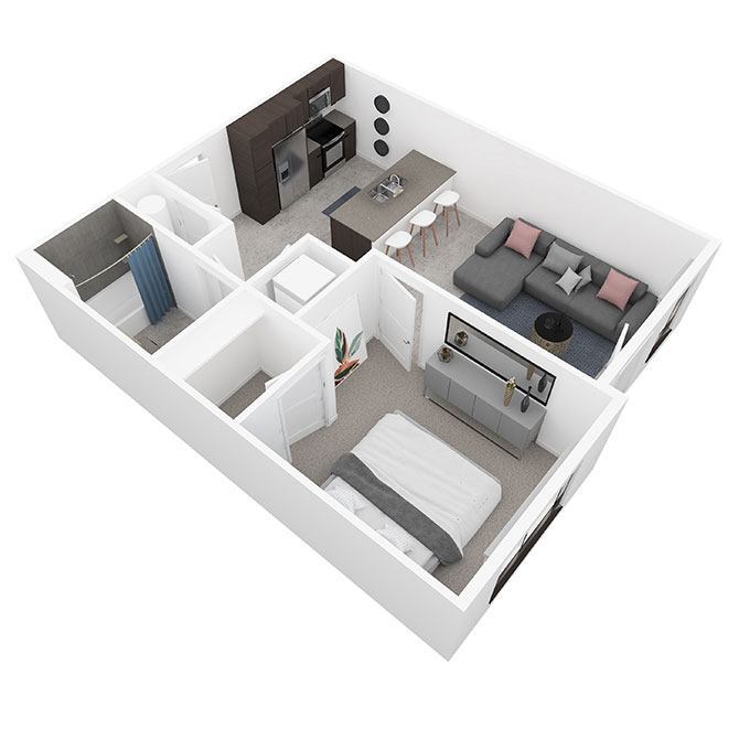 Studio, 1 Bath, 661 sq ftModel Gallery