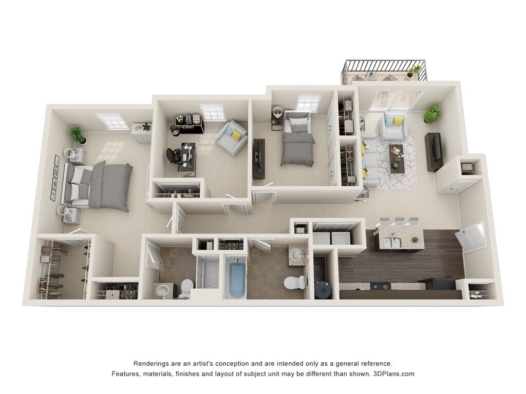 Apartment Model: 3BR/2BAFrom $1,6563 Bedroom, 2 Bath, 1225 sq ftAvailable Now![]()