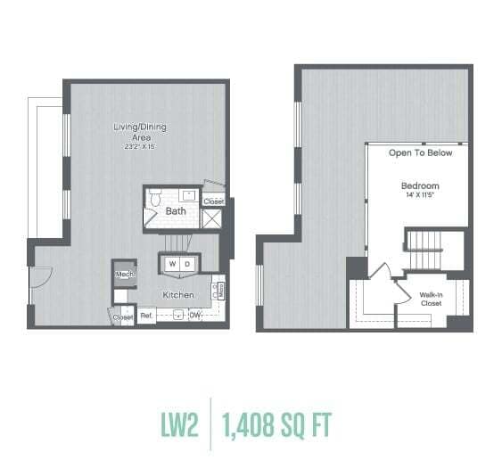 1 Bed/1 Bath Loft-LW1 - Floorplan Apartment Unit: 2-1EApartment Model: 1 Bed/1 Bath Loft-LW1$3,9551 Bedroom, 1 Bath, 1605 sq ftAvailable May 28, 20261 Bed/1 Bath Loft-LW-2