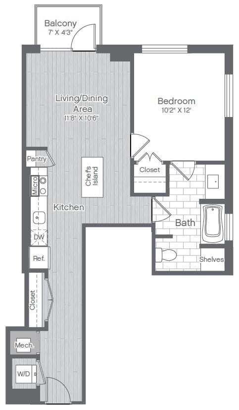 1 Bed, 1 Bath, 1605 sq ftPlus FeesAvailable May 28Largest 1 BedroomThis is the largest 1 Bedroom at this PropertyModel Gallery