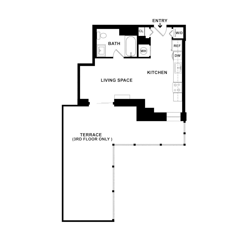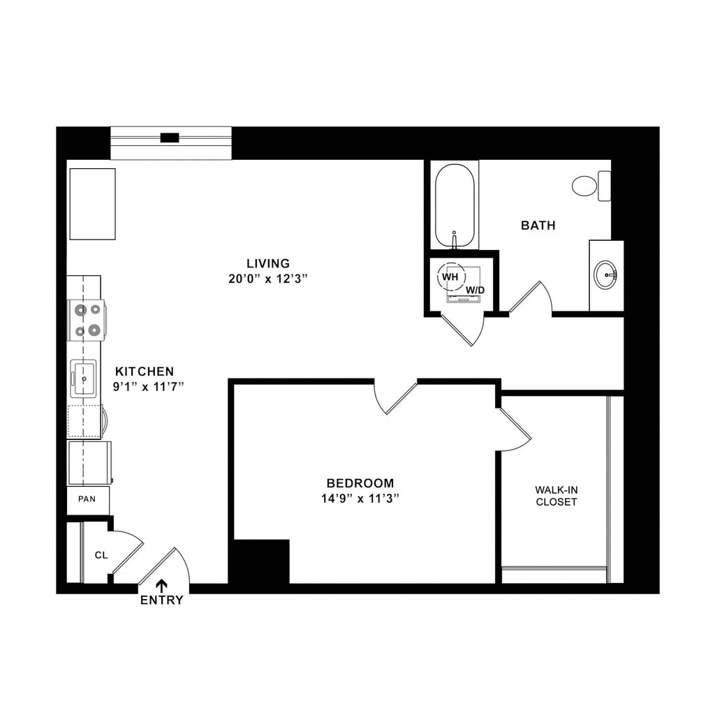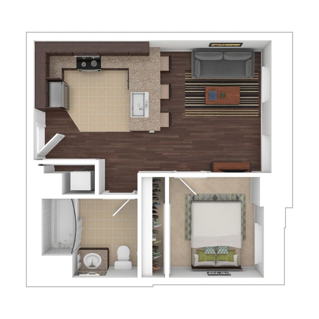 Studio, 1 Bath, 476 sq ftAvailable NowModel Gallery