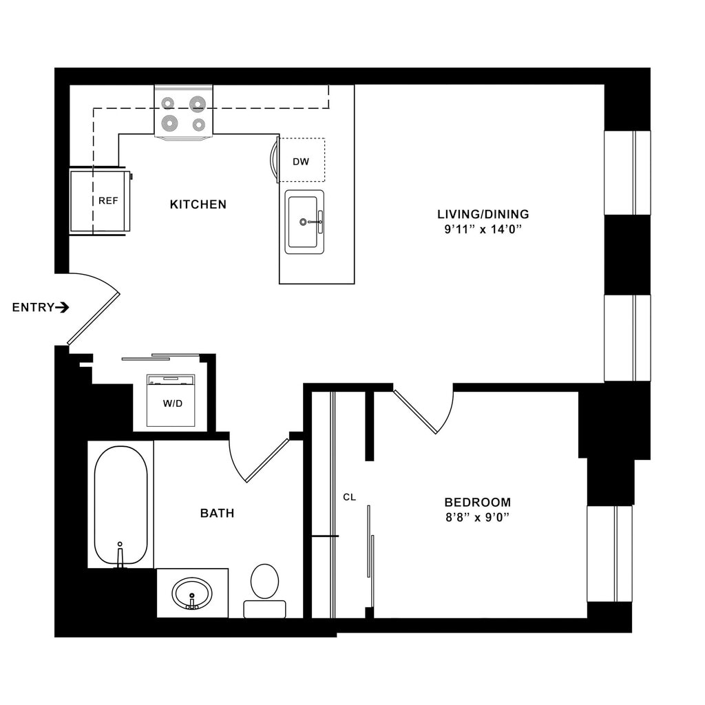 Apartment Model: H-S5$1,995Studio, 1 Bath, 476 sq ftAvailable NowFloorplansPhotos![]()