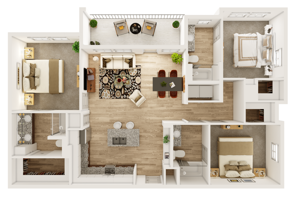 1 Bedroom to 3 Bedroom Apartments at The Beacon at Pfluger Farm currently range from $1,053 to $2,299