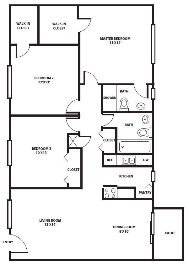 2 Bedroom - Floorplan 1 3 Bedrooms