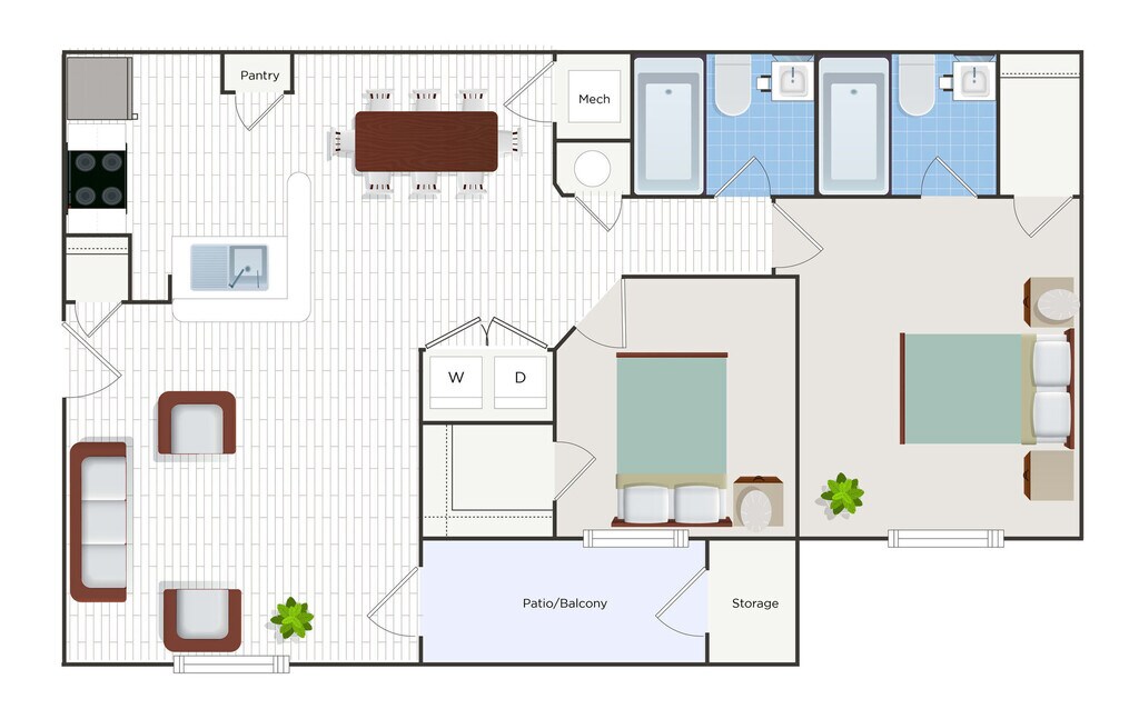 Apartment Model: A1From $1,1251 Bedroom, 1 Bath, 690 sq ftAvailable Now![]()