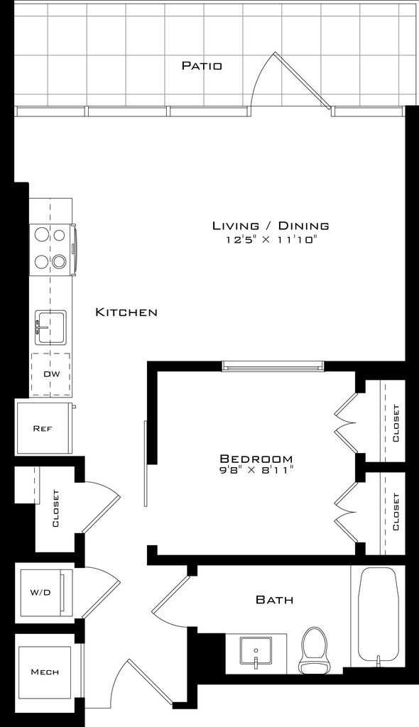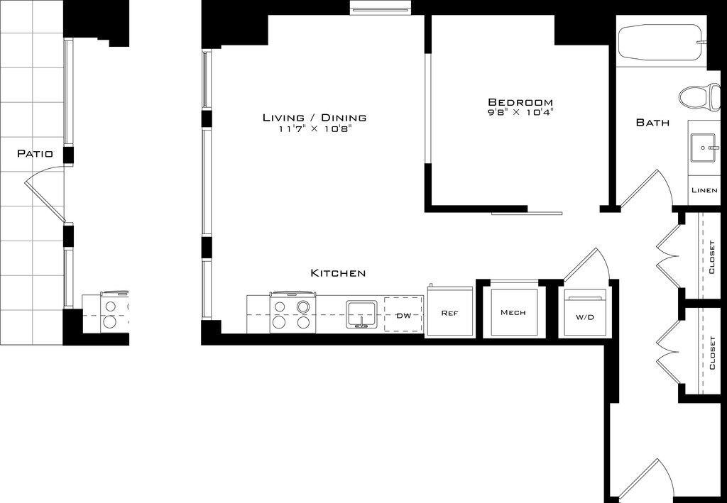 Studio, 1 Bath, 386 sq ftAvailable NowModel Gallery