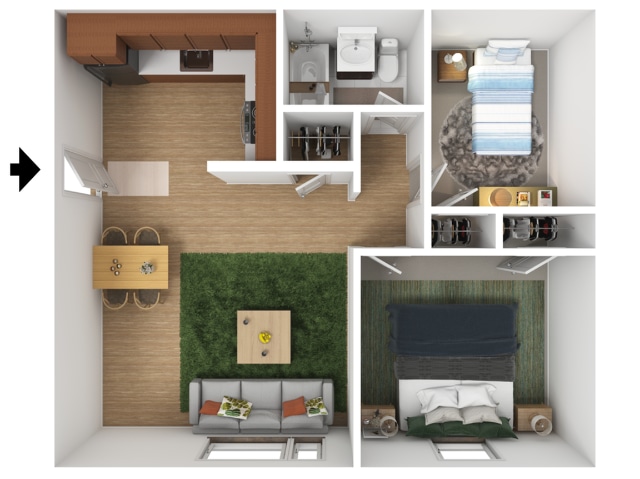 1 Bed, 1 Bath, 511 sq ftLargest 1 BedroomThis is the largest 1 Bedroom at this PropertyModel Gallery