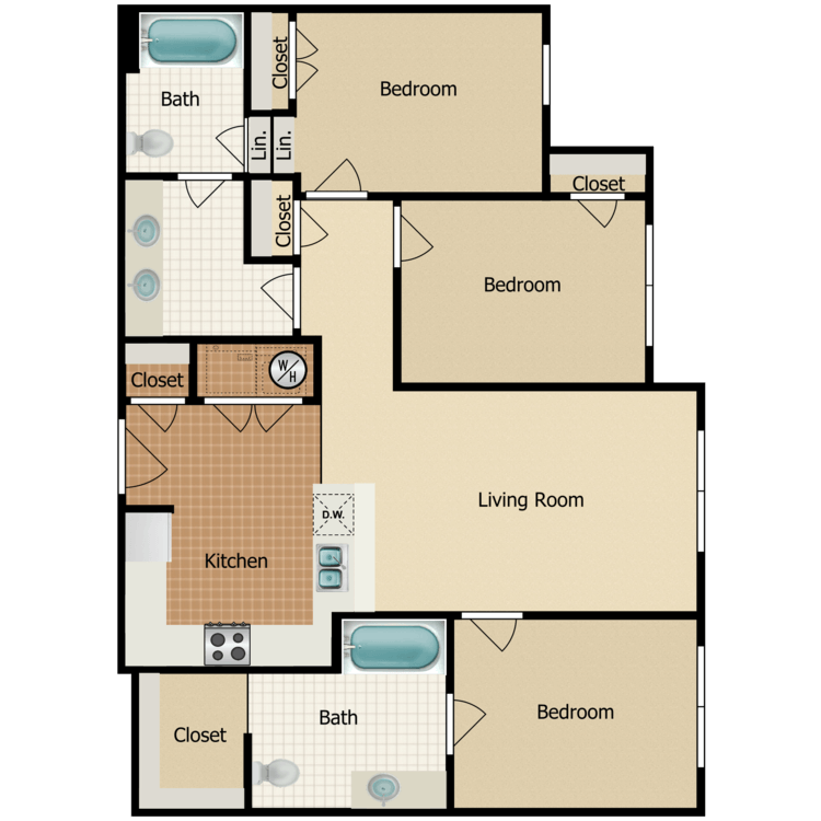 3 Beds, 2 Baths, 1150 sq ftModel Gallery