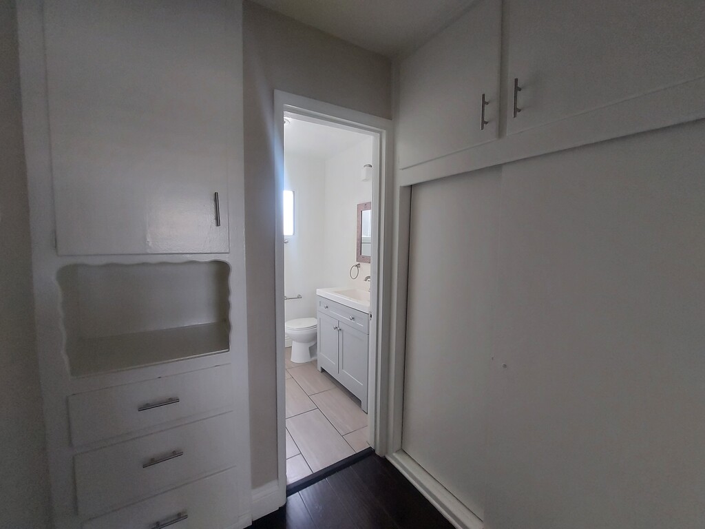 A fantastic, upgraded one bedroom apartment. This unit has new, two-tone paint and vinyl hardwood plank flooring throughout the apartment and a spacious layout with large living room, eat-in kitchen and great-size bedroom. Kitchen was recently remodeled and has new counters, cabinets, sink and fixture. Building has on-site laundry, gated entrance and shared pool. Most small pets OK.