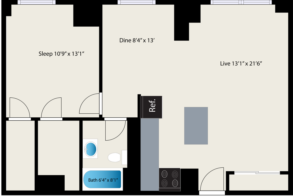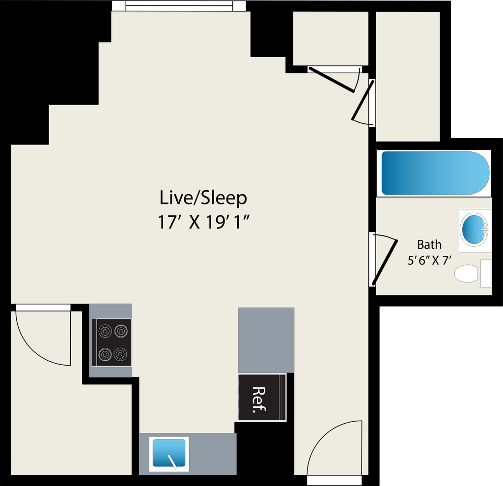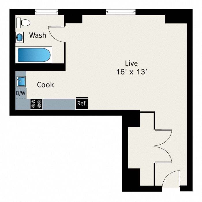 Studio, 1 Bath, 403 sq ftAvailable NowModel Gallery
