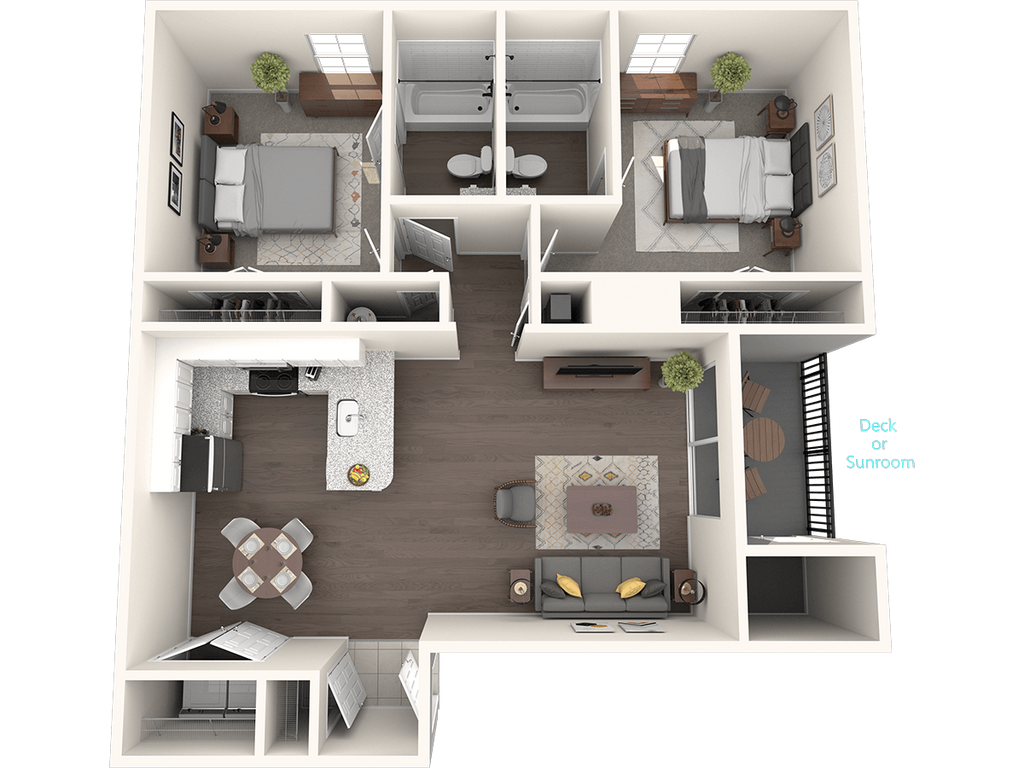2 Beds, 2 Baths, 1020 sq ftAvailable NowModel Gallery