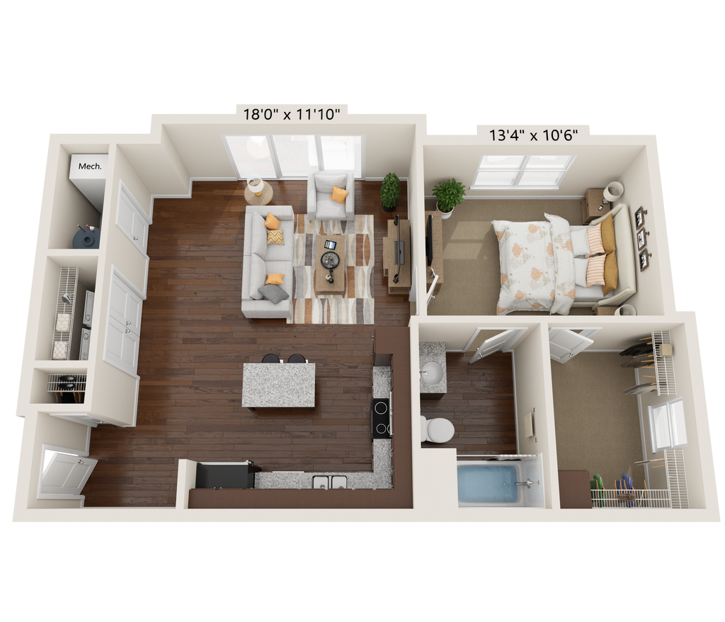 Apartment Model: White PineCall For Rates1 Bedroom, 1 Bath, 756 sq ftUnavailableWhite Pine - Floorplan 1 Butternut