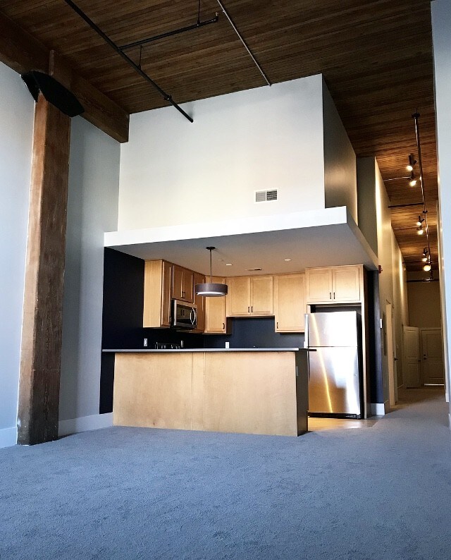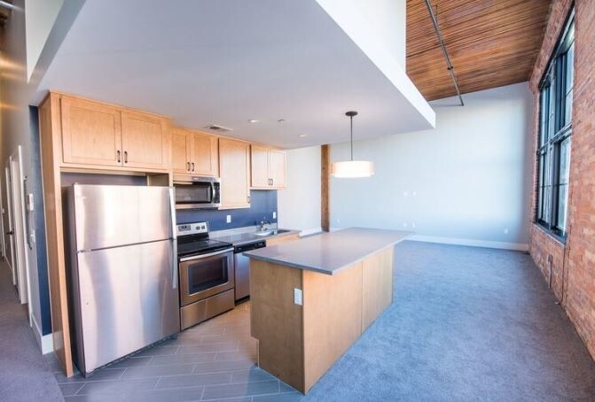 Our homes features a unique, open floor plan, rich with historical appeal including exposed brick walls, ductwork, timber columns and beams with cast iron, 14' wood ceilings. and large windows offering superb natural light. The Berdan is perfectly situated in the heart of downtown Toledo's Historic Warehouse District, across the street from the home plate entrance to Fifth Third Field, convenient to the Business District, and within walking distance of numerous retail, dining, parks and recreation, major businesses and employers, medical facilities, and entertainment venues including Hensville, the Maumee River, Middle Grounds Metropark, Huntington Center, Promenade Park, Toledo’s Farmers Market on Erie Street, and Seagate Convention Center. Modern elegance, comforts, and conveniences abound with quartz countertops, stainless steel appliances, central heat/air, soft close maple cabinetry, ample closet space, in-unit washer and dryer, quality finishes, and attention to detail throughout. Residents can enjoy relaxing in a chaise lounge on the rooftop deck, cooking on the grill, cheering on the Mudhens, and taking in the panoramic views of downtown.