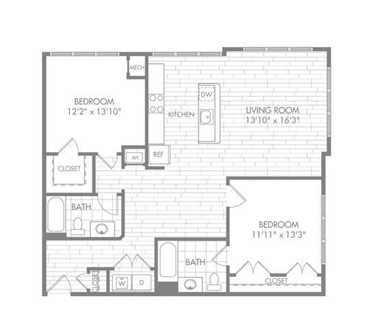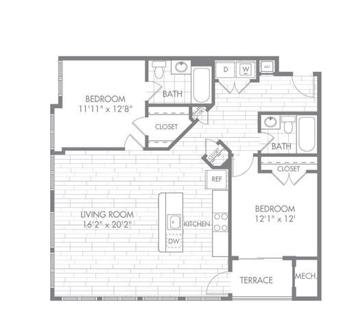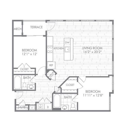 Apartment Model: A2Q1 Bedroom, 1 Bath, 829 sq ftUnavailable![]()