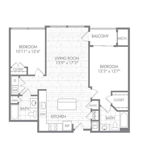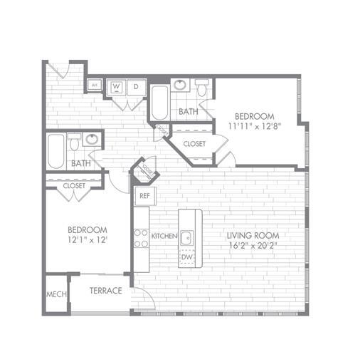 Apartment Model: A2B1 Bedroom, 1 Bath, 817 sq ftUnavailable![]()