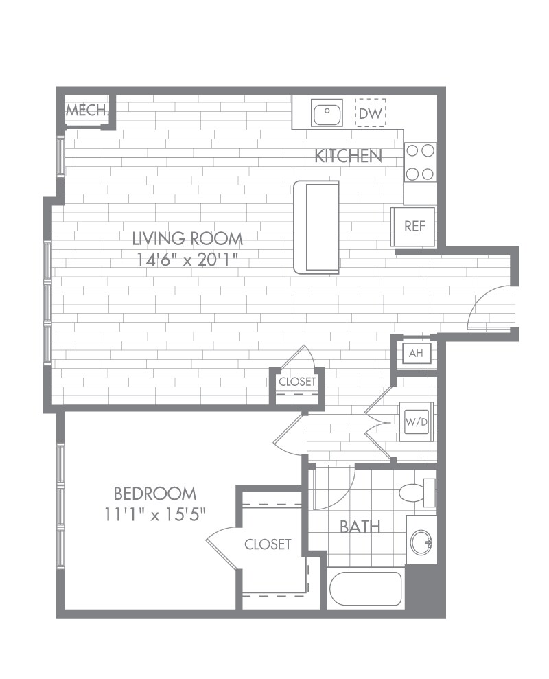 1 Bed, 1 Bath, 803 sq ftModel Gallery