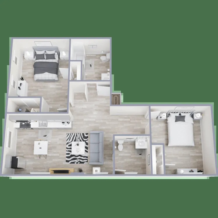 2 Beds, 1.5 Baths, 811 sq ftModel Gallery