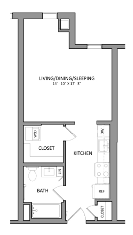 Canvas S1A | Studio | 1 Bath - Floorplan 1 1 Bedroom