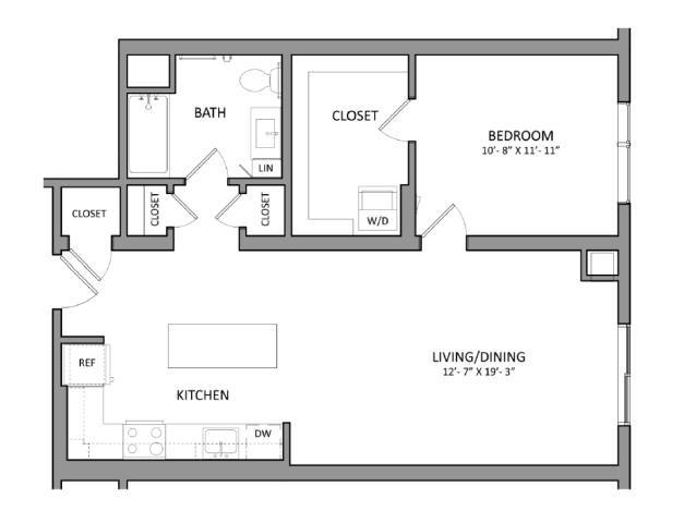 Apartment Model: Link A1C | 1 Bed | 1 BathFrom $2,6331 Bedroom, 1 Bath, 700 sq ftAvailable December 2, 2025Floor plans are artist's rendering. All dimensions are approximate. Actual product and specifications may vary in dimension or detail. Not all features are available in every rental home. Prices and availability are subject to change. Base rent is based on monthly frequency. Additional fees may apply, such as but not limited to package delivery, trash, water, amenities, etc. Deposits vary. Please see a representative for details.