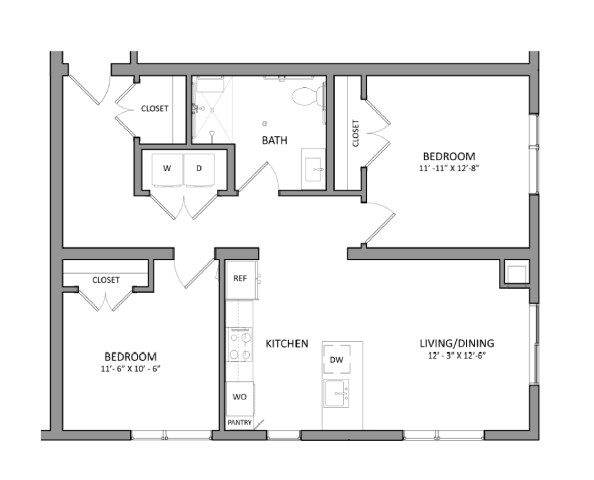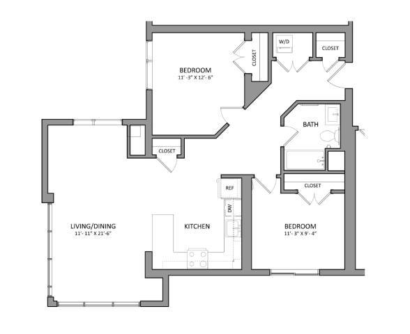 1 Bed, 1 Bath, 613 sq ftModel Gallery